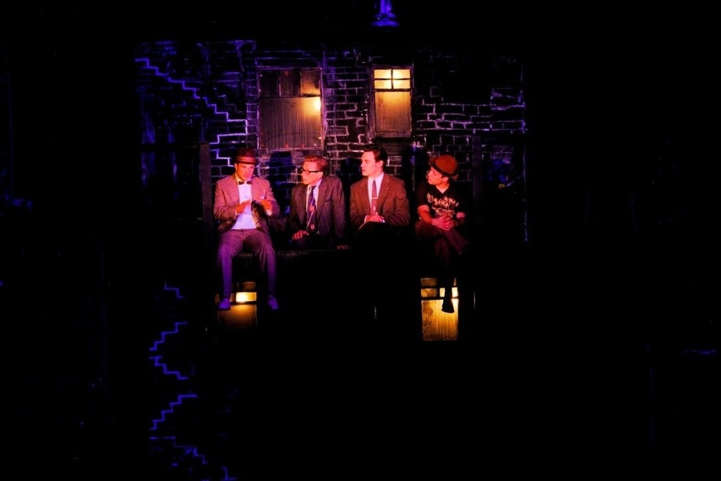 “...This production vividly dramatizes the suffocating closet of a restrictive era. Kurt Boetcher’s set, a two-level stage against a black brick wall, evokes the seedy places where “temperamentals” had to congregate, and director Michael Matthews’ stylized opening, in which men in trench coats and fedoras stalk each other with a mixture of menace and seduction, could be a film noir sequence.”